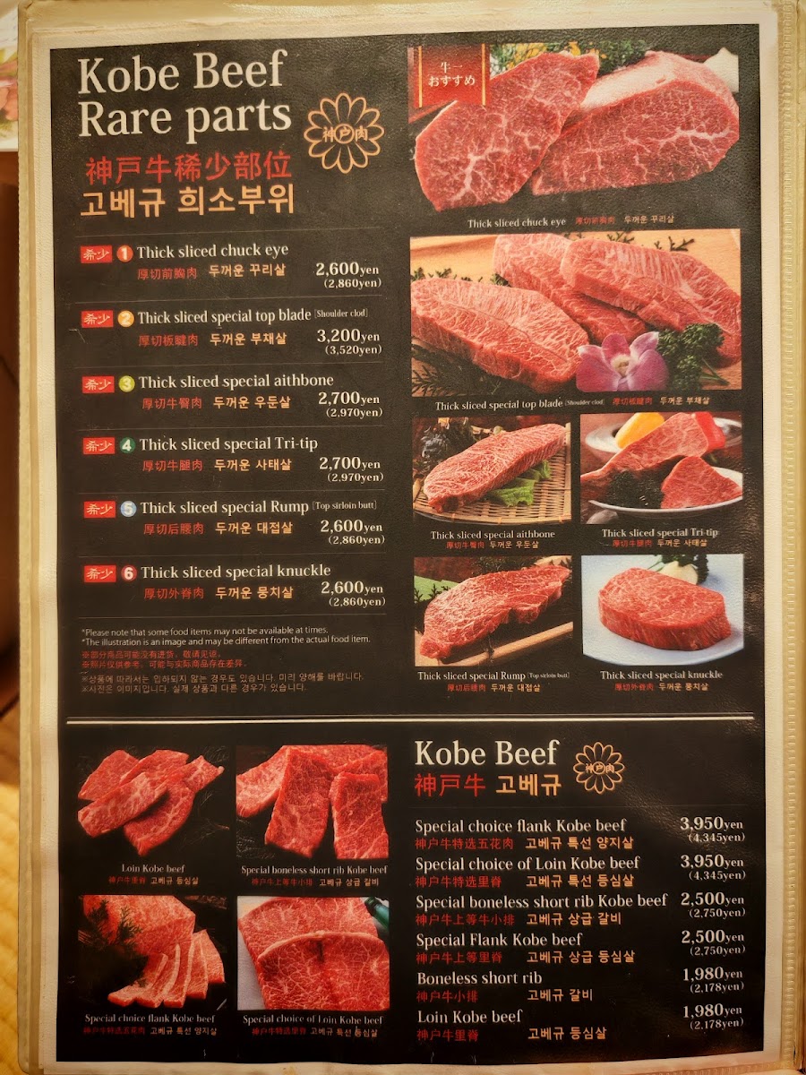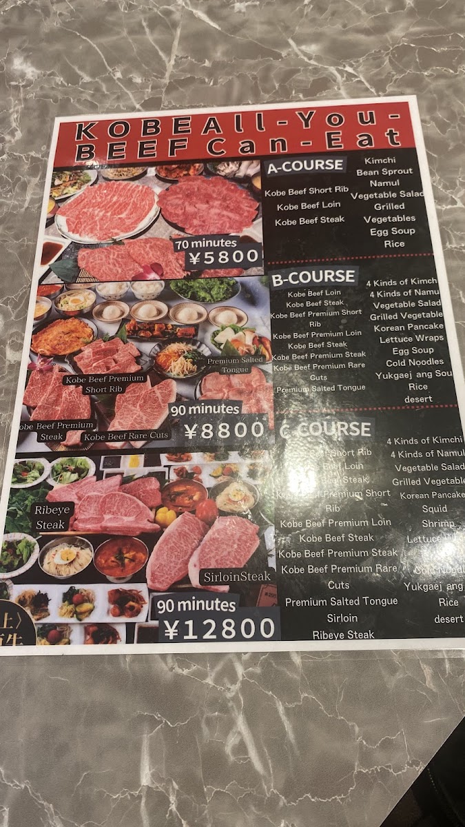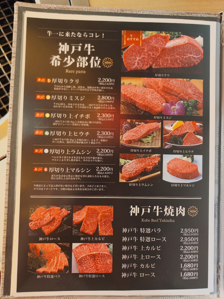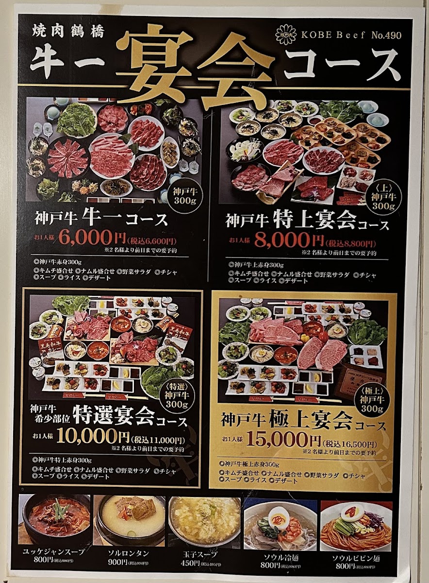 The dinner menu at Gyuichi Dotombori offers an exquisite selection of dishes, with the highlight being the 神戸牛 牛一宴会コース (Kobe Beef Gyuichi Banquet Course). This lavish set features a range of meticulously prepared dishes centered around high-quality Kobe beef, offering an unparalleled dining experience. The menu is designed to showcase the rich flavors and tender textures of the beef, prepared with skillful attention to detail. The Kobe Beef Gyuichi Banquet Course is a standout for those looking to indulge in the finest cuts of meat, though specific pricing details were not provided. The meal includes multiple courses, each thoughtfully crafted to complement the next, creating a seamless and delightful dining experience. Whether you are a connoisseur of fine beef or simply in search of a memorable meal in Osaka, Gyuichi Dotombori’s dinner offerings promise to satisfy even the most discerning palates.